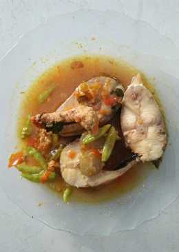 Ikan kembung segar, udang segar, bawang merah, iris, bawang putih, iris, cabe merah, cabe rawit, iris, kunyit, garam & gula -